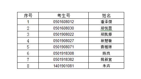 经2019年高职学前教育专业学院试点班“文化基础”考试和“专业综合理论”考核通过,以下8名学生将参加4月20日的“职业技能测试”考试(面试),名单见下文: