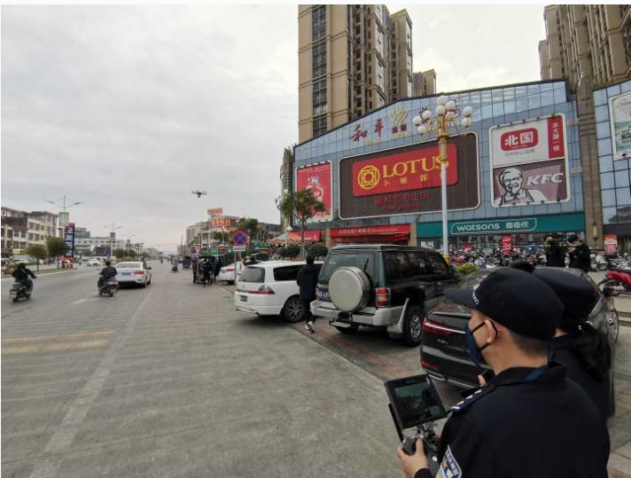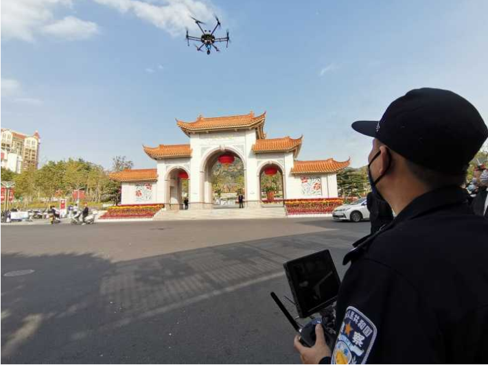 “为了你和他人的身体健康,请勿在公共场合聚集,外出时请佩戴口罩。”1月2日下午,在汕头市潮阳区东山公园、和平广场等公共场所,伴随着警笛声,一台飞旋在空中的警用无人机不时播出普通话和潮语的温馨提示。这是汕头市潮阳区公安机关创新举措,在全市率先启用警用无人机对人员密集公共场所进行巡视、宣传,既接地气,又让人入脑入心。