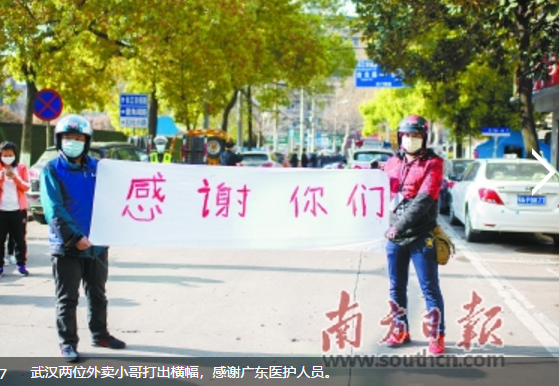 “我是武大的老师,欢迎大家在春暖花开的时候,来逛武大,赏樱花!”武汉东西湖方舱医院院长章军建前来为医疗队队员送行。“感谢你们!”在武汉,两名外卖骑手自发制作了横幅,赶来广东中医医疗队驻地送别队员。前来送行的语文老师为广东医疗队队员朗诵,表达深深的谢意……