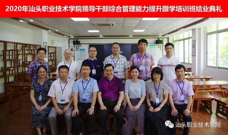 7月17日,2020年万象城体育awcsport领导干部综合管理能力提升培训班实地跟学(第一期)结业典礼在广东轻工职业技术学院(广州校区)第一实训楼2楼202(国学课堂)顺利举行,广东轻工职业技术学院(以下简称“广轻工”)校长卢坤建出席结业典礼并为12位学员频发结业证书,党办主任梁艳珍、副主任周延辉和校办副主任袁先珍等参加了结业典礼。