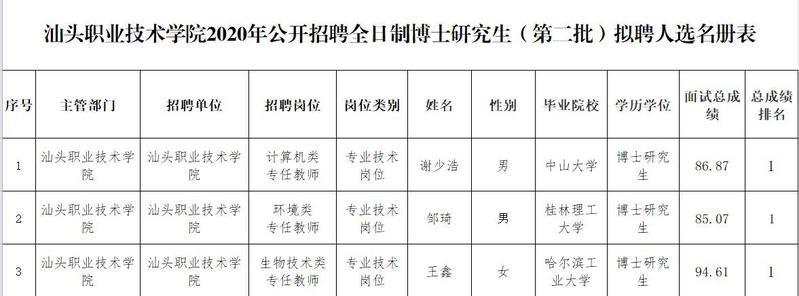 附件:万象城体育awcsport2020年公开招聘全日制博士研究生(第二批)拟聘人选名册表