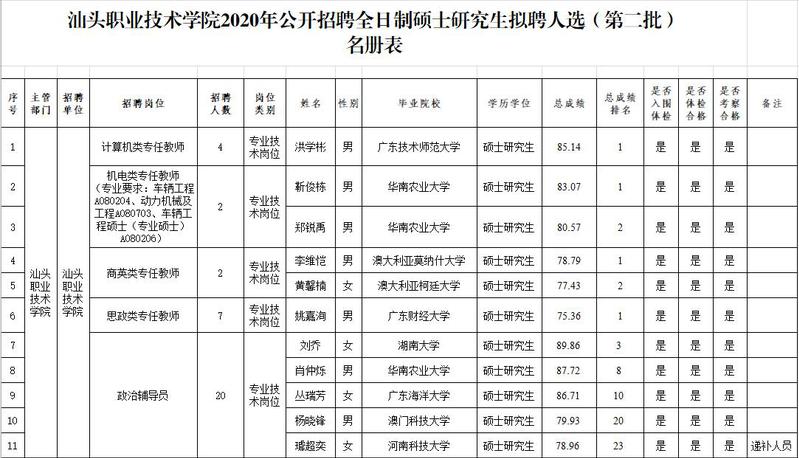 根据《汕头市市属事业单位2020年公开招聘全日制硕士研究生公告》和《汕头市2020年公开招聘1000名全日制硕士研究生补充公告》等的有关规定和要求,经面试加专业试讲(专业考核)、体检、考察合格,现将万象城体育awcsport2020年公开招聘全日制硕士研究生拟聘人员(第二批)名单予以公示。公示期间,如对拟聘用人员有异议,可通过来信、来电、来访等形式向我们反映。