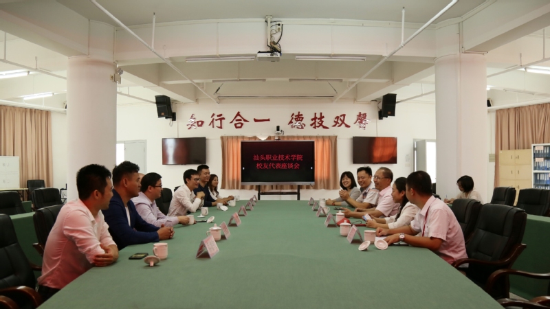 在开学典礼上,奏国歌升国旗,这满满的仪式感,宣告着新生们一个崭新征程的开始。学院院长吴萍以《不负青春立大志不负时代勇奋斗》为题,给同学们上了开学的第一课,希望同学们牢记汕职院“知行合一,德技双馨”的校训,以优秀的学识、广阔的视野、扎实的才干,练就过硬本领,做有为的新时代青年。 学院校友代表吴政伟同学在发言中分享了在汕职院的收获,希望师弟师妹们勇于挑战自我、勤俭治学,小我融入大我。与此同时,我们校友会成员陈艺生等多位校友代表,分别出席了学院金园校区,东墩校区以及新津校区的开学典礼活动。校友代表陈艺生在新津校区上台发言,鼓励师弟师妹们在汕职院里探求真知,努力增长才干,不负韶华,砥砺前行。 典礼结束后,学院领导与由汕职院校友会秘书长江浩生带领的校友代表们在图书信息大楼六楼会议室进行座谈交流会。王小辉书记代表学院对各位校友的返校表示热烈欢迎。王小辉书记从党建水平不断提高、综合实力不断增强、科研水平不断提高、办学规模不断扩大、服务汕头发展能力不断提升五个方面向校友们介绍了学院的发展情况,同时也希望刚成立的校友会能不断加强校友之间、校友与学校之间的联系,为校友事业发展推波助澜,为学院建设添砖加瓦。吴萍院长表示校友会是学院很大的资源,相信各位校友都能为学院的发展做出贡献,希望以后和校友会加强合作、加强了解、加强沟通和交流,促进彼此的相互成长。各校友代表也分别讲述了进入社会后的工作经历和感悟,言语中透露感恩母校的培育之情。也希望通过校友会这个温暖有爱的组织平台,能以自身能力回馈学院,为母校的发展贡献微薄的力量。