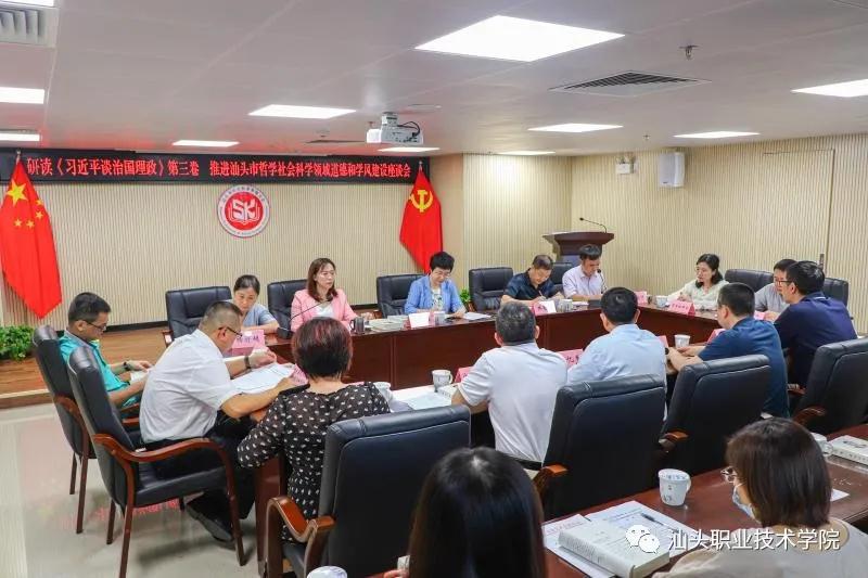 2020年7月30日上午,汕头市社会科学联合会在市科技馆6楼会议室举行了研读《习近平谈治国理政》第三卷,推进汕头市哲学社会科学领域学术道德和学风建设座谈会。学院副院长林育青带队、科研处处长陈松洲以及16位2020年市社科课题负责人参加了学习座谈会。会议宣读了汕头市社科联同意在万象城体育awcsport设立汕头市人文社会科学重点研究基地的通知,这是市社科批准设立的首个汕头市人文社科重点研究基地。