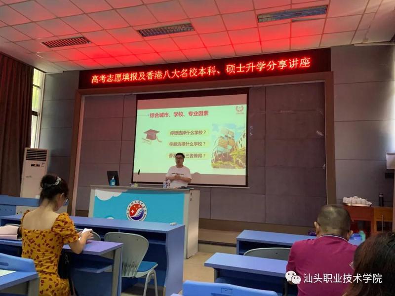 为推进学院“创新强校工程”及粤港澳大湾区职业教育合作项目开展,学院于近日邀请职教集团理事单位——香港斑马教育集团潘剑峰董事长莅临学院,在金园校区阶梯教室,面向感兴趣的教职工举办关于高考志愿填报及香港八大名校本科、硕士升学分享的讲座。