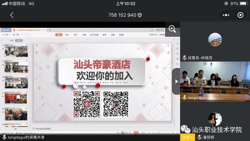 为保证2018级酒店管理专业52名学生毕业顶岗实习质量、提高实习效果,7月3日上午,经济管理系在金园校区教学楼203教室召开了2018级酒店管理专业顶岗实习动员大会。会议以腾讯在线会议形式召开。经济管理系主任刘汉清、党总支副书记张玲英、系副主任潘丽辉、办公室主任唐大桂、旅游管理专业骨干教师代表,帝豪酒店人力资源部总监姚依丽、何可珍、徐丹等出席了会议,往届酒店管理专业的毕业生代表参加了会议。会议由旅游管理专业教研室主任孙庆春主持。