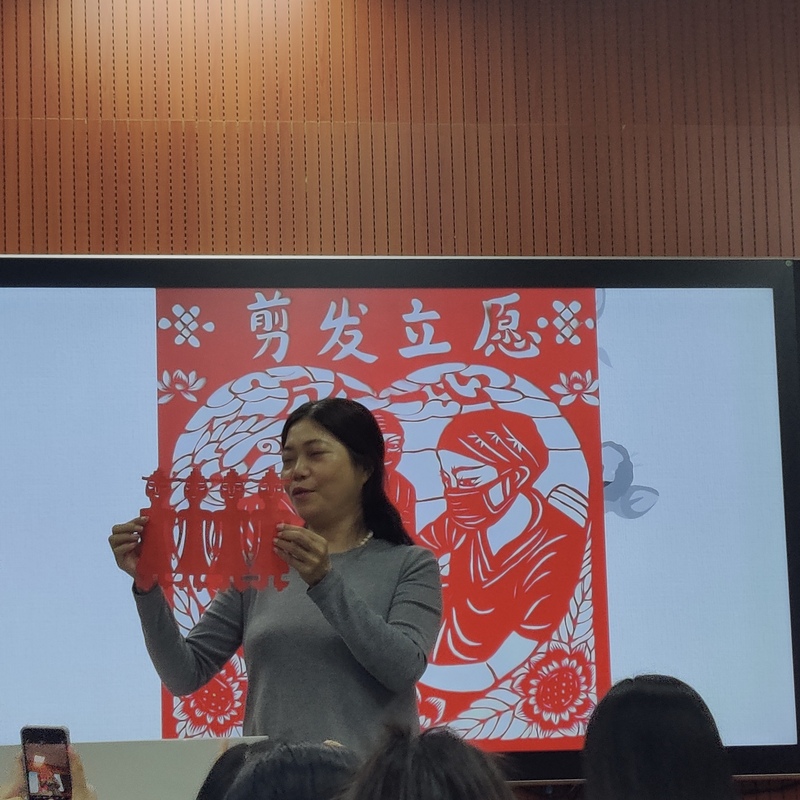 11月13日上午,人文社科系邀请国家级非物质文化遗产项目(剪纸)省级代表性传承人陈雁淑老师在金园录播室为全系师生开了一场别开生面的讲座:《潮阳剪纸与民俗文化》。人文社科系承担了学院“创新强校”(2019-2021)二级项目《潮汕文化传承与发展研究》,陈雁淑老师是该项目的子项目“陈雁淑技能大师工作室”首席技能大师,汕头市优秀拔尖人才,四十年耕耘,精品不断。人文社科系副主任杨映红、人文社科系办公室主任郑菲、人文社科系第二党支部书记伍娜等出席讲座。讲座由汉语言文学教研室主任林钗主持。