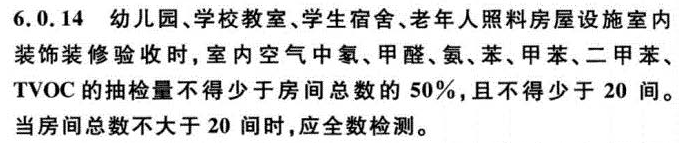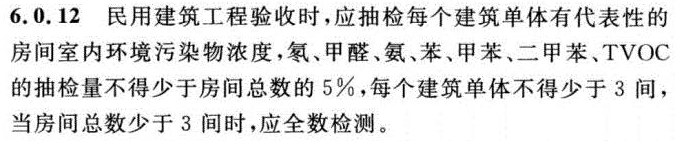 (一)采样依据:根据《民用建筑工程内环境污染控制标准》(GB 50325 - 2020)中6.0.12、6.1.14和表6.0.15 室内环境污染物浓度检测点数设置。如下图: