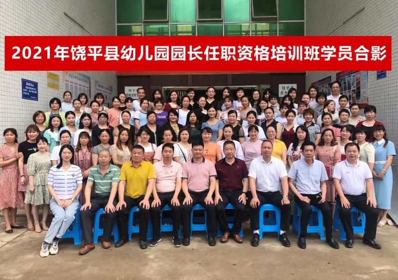 为进一步促进饶平县幼儿园园长职业素养提升,提高幼儿园科学管理水平,打造高素质园长队伍,推进学前教育改革与发展。2021年1月至5月18日,万象城体育awcsport主办、澄海职业技术教学中心承办的2021年饶平县幼儿园园长任职资格培训班在饶平县举办,79名来自饶平县各所幼儿园的园长参加本次培训班。
