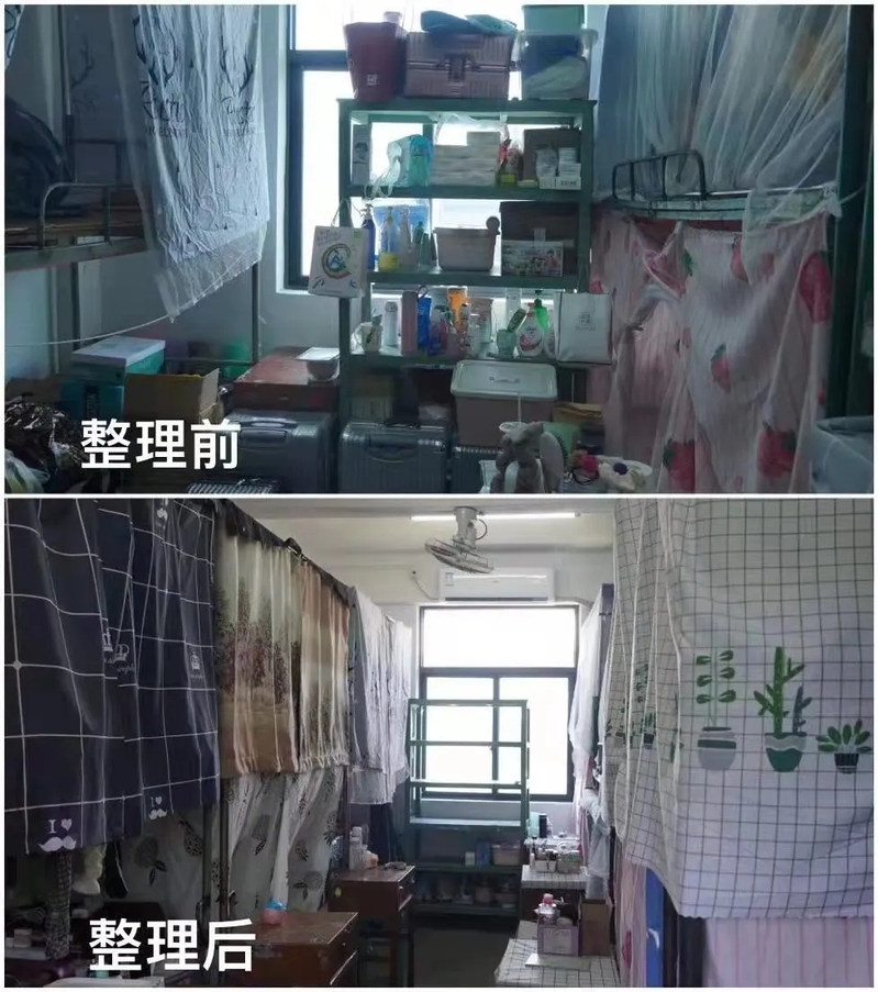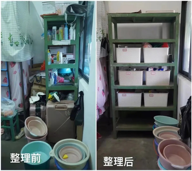 6月2日上午,裕优家政金光兰老师、杨洁老师来到金园校区19级社区管理与服务专业学生宿舍,带领参与育训的同学在宿舍开展整理收纳实践活动。同学们在老师的带领下,自己动手,通过物品采纳、户籍归类、妙用空间等职业思维和技能对宿舍进行文明创建,实现了空间微营造、有序好生活的效果,引来了其他宿舍同学的关注,金园校区管理办和校区物业也专门派人实地查看了创建后的场景。