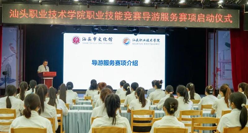 陈副馆长在致辞中,对汕头文化传承进行了深刻的解读,并通过层层递进的文化发展脉络,上下左右与前后内外的非遗文化传承思路,为旅游管理专业的同学们梳理了文化之根、文化之魂,寄语同学们了解非遗文化、传承非遗文化,在旅游工作实践中保护并利用好非遗文化,在即将开始的导游服务赛项比赛中运用好文化。