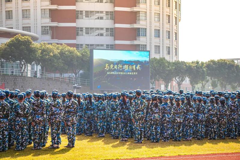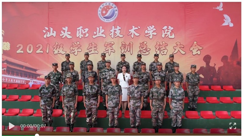 同学们一起观看了军训回顾视频《与党同行,强国有我》,一起温习和教官们的深情厚谊,和同学们的团结互助,和在军训中的酸甜苦辣、欢声笑语。
