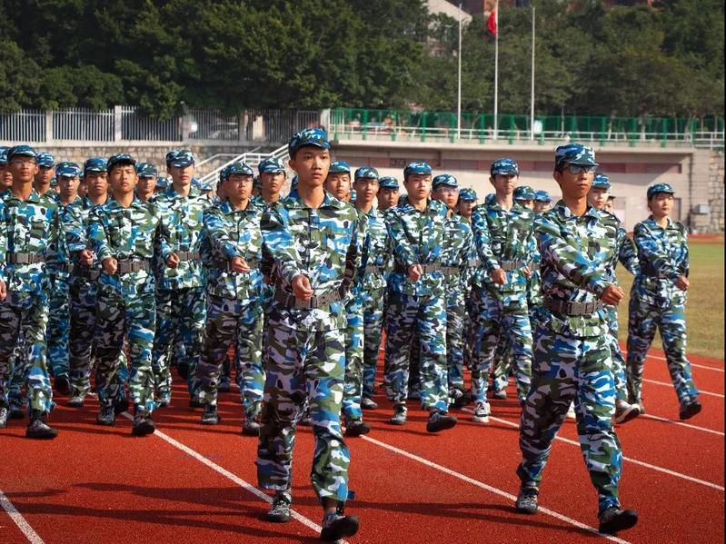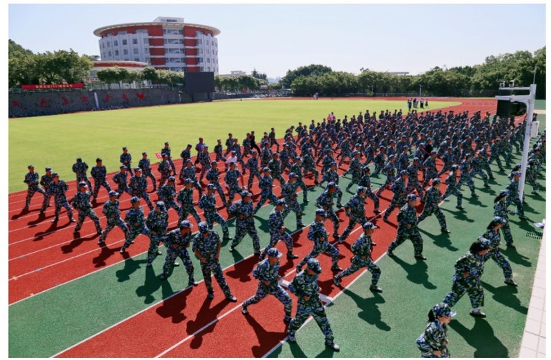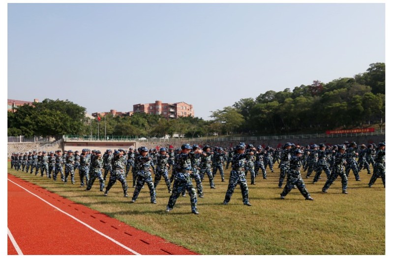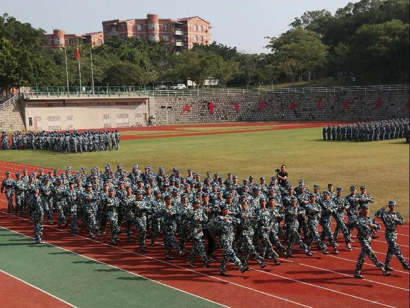 在军训即将结束的时候,他们把不舍化为在训练场上的飒爽英姿,迈着铿锵的步伐走过主席台,接受濠江区武装部和学院领导、老师们的检阅。