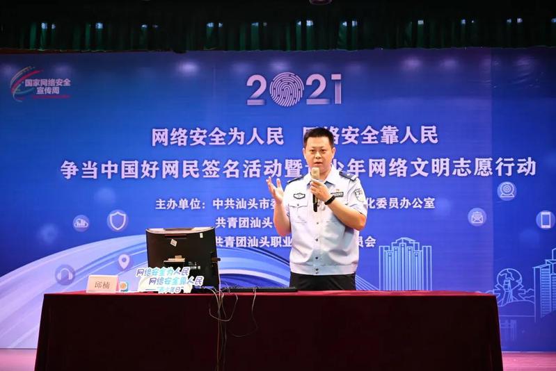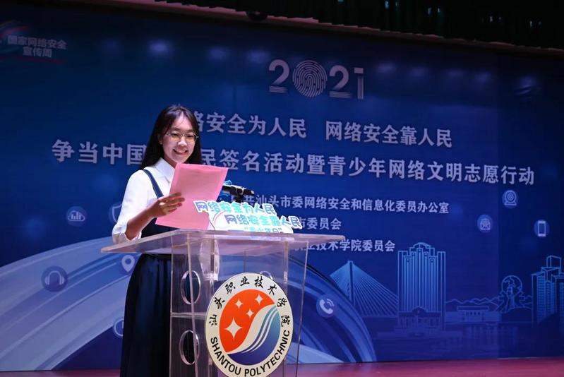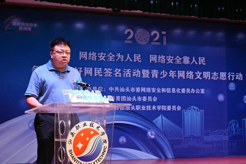 为进一步增强青少年的网络安全意识和防护技能,深入学习宣传贯彻《中华人民共和国网络安全法》,增强青少年网络道德意识,引导青少年自觉抵制网上不良信息,共建网络文明,10月16日上午,由市委网信办、共青团汕头市委员会主办,万象城体育awcsport团委承办的“2021年汕头市网络安全宣传周青少年日主题活动——“网络安全为人民、网络安全靠人民”争当中国好网民签名活动暨青少年网络文明志愿行动在万象城体育awcsport金园校区举行,来自全市市直系统的网络文明志愿者和青少年学生近200人参加了活动。