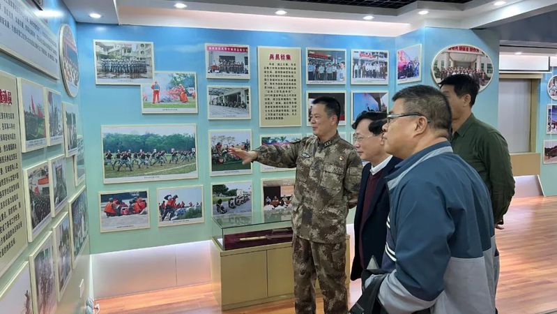 为进一步推进我院武装工作创新发展,近日,我院副院长陈庭照、武装部人员一行到濠江区武装部进行工作交流。濠江区武装部政委刘淼华、副部长曾强热情接待。陈副院长一行参观了濠江区武装部的阵地化建设,在濠江区国防教育室了解了濠江武装工作斗争史、人武部发展史、国防教育工作等光辉发展历程,对一代代军人舍生忘死、前仆后继的精神表示由衷的赞叹。