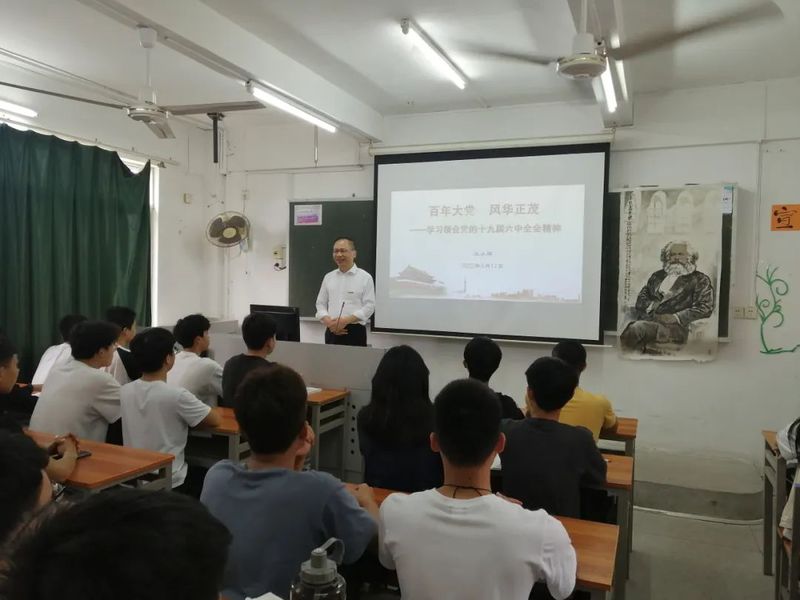 课堂上,王书记结合党的百年奋斗历史系统讲授了十九届六中全会的重大意义和精神内涵,围绕《中共中央关于党的百年奋斗重大成就和历史经验的决议》主要内容、“两个确立”的决定性意义、学思践悟新思想等三个方面讲解了党的百年奋斗重大成就和历史经验,他指出世界正处于百年未有之大变局,中国要做到自立自强,关键在于年轻一代,勉励同学们努力提高计算机专业素养,积极投身于国家的计算机技术发展工作中。