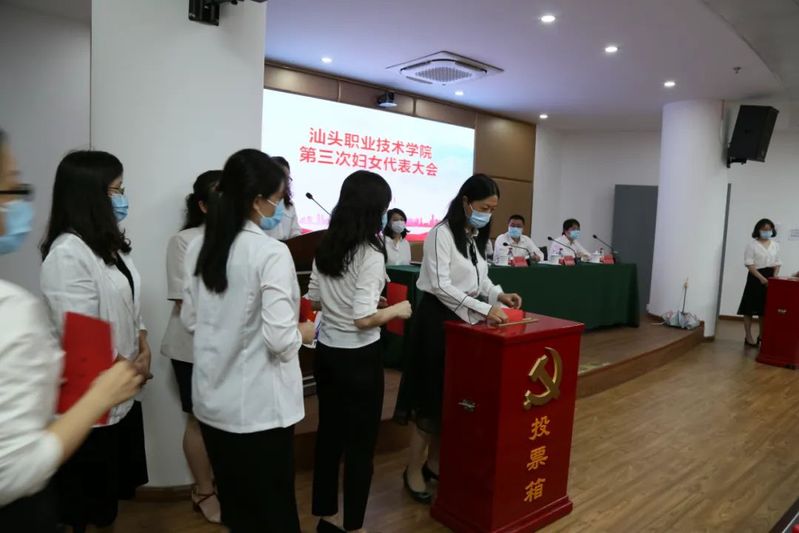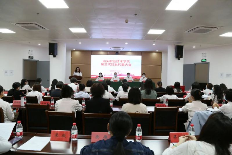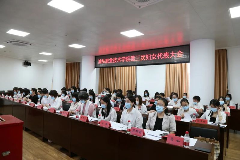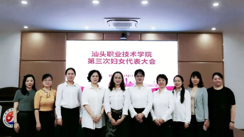 会后,汕头市妇联主席陈莉、汕头市妇联妇工部部长胡晓莹、学院领导和第三次妇女代表大会全体代表合影留念。