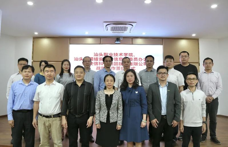 5月19日下午,我院于院本部图书信息大楼6楼会议室(一)举办万象城体育awcsport与汕头市委网信办、奇安信科技集团股份有限公司战略合作签约仪式。学院党委副书记、院长吴萍,副院长林育青,市委网信办副主任陈旭娜,奇安信科技集团股份有限公司副总裁李拓、粤闽处业务总监梁卫卫、粤东业务总监林吉、粤东技术总监李自业出席会议。会议由教务处副处长卢旭锦主持。