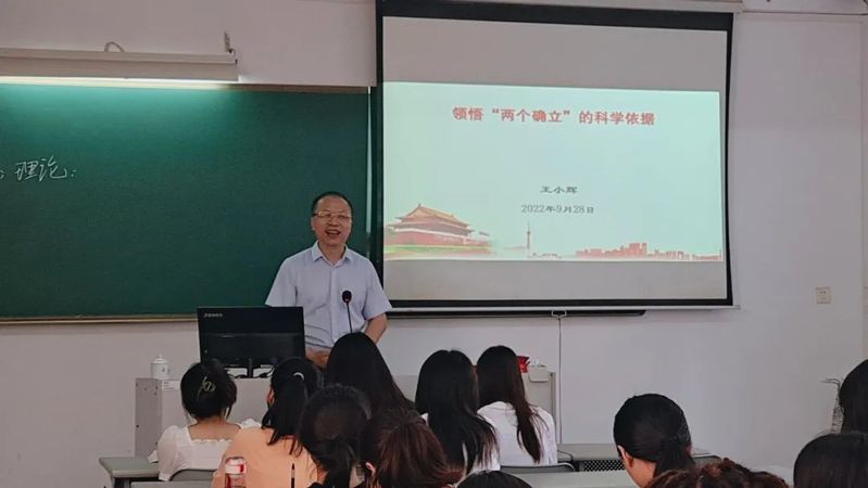 9月28日上午10点,学院党委书记王小辉在教学三区312教室以《领悟“两个确立”的科学依据》为题,为经济管理系金融科技应用专业的同学们开讲“思政第一课”。