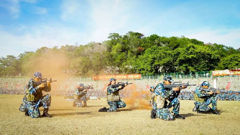 匕首操、刺杀操、战术表演和花样方阵,充分展现了汕职院新生团结一致、奋勇向前的精神面貌。最后,同学们齐声喊出牢记心中的社会主义核心价值观,体现了同学们心怀理想,信念如山的精神状态。