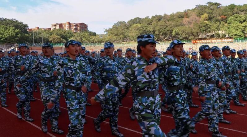 院本部3千多名2022级新生组成16个方阵,迈着整齐的步伐,喊着嘹亮的口号,依次经过主席台接受检阅。