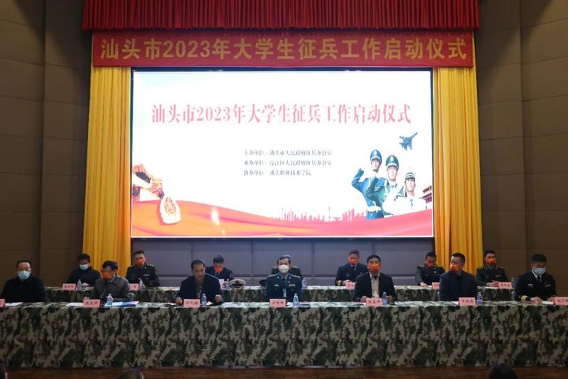 近日,由市政府征兵办公室主办,濠江区政府征兵办公室承办的汕头市2023年大学生征兵工作启动仪式在我院举行。仪式由濠江区副区长郑元猛主持。汕头警备区大校副司令员方传红、学院副院长陈庭照出席仪式并讲话。启动仪式上,陈庭照副院长代表学院党委致辞,他介绍了2022年学院征兵工作成绩,并表示学院将一如既往做好大学生征兵工作,寄予同学们践行国防使命、投身火热军营、争当时代先锋的殷切期望。市征兵宣讲团邀请三名优秀大学生士兵,通过现场宣讲、交流互动等方式,分享自身军旅成长经历,展示大学生士兵风采,应征大学生代表向大家宣读倡议书。最后,方传红副司令员发表讲话,他鼓励汕头高校大学生积极响应国家号召,勇敢投身军营。市政府、汕头警备区、市委宣传部、汕头大学、市教育局、各区县人武部有关负责人,学院近500名大学毕业生参加活动。