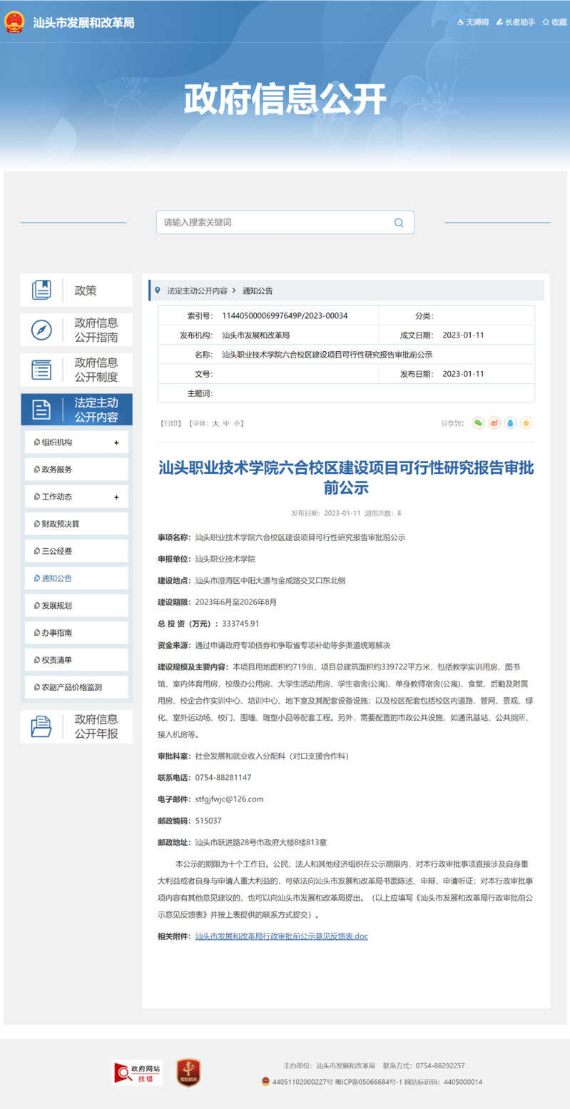 在汕头市发展和改革局官网