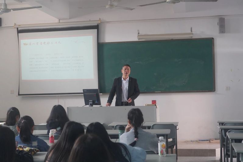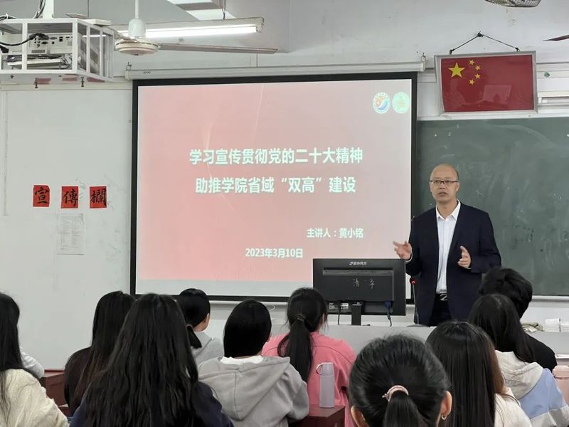 3月10日,人文社科系党总支书记黄小铭在东墩校区以《学习宣传贯彻党的二十大精神,助推学院省域“双高”建设》为题,为语文教育专业的同学们开讲2023年春季学期“思政第一课”。
