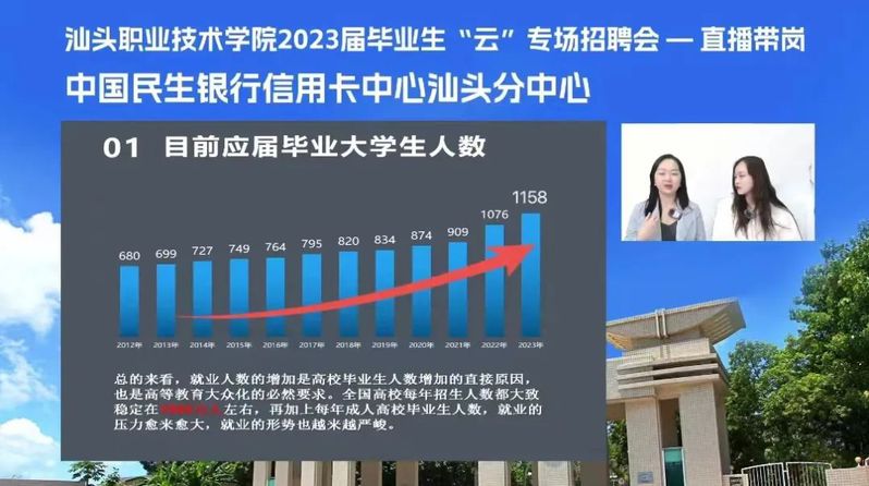 本次直播带岗活动,共有广东乐普升文具有限公司、中国民生银行信用卡中心汕头分中心、汕头肯德基有限公司、康师傅控股广州顶益食品有限公司、广东美宜佳便利店有限公司、汕头龙光喜来登酒店等五家用人单位参与,提供PE工程师/自动化机械技术员/管理培训生/部门行政管理岗等10个职位100余个岗位,岗位辐射先进制造、财经商贸、电子信息等多个二级学院。