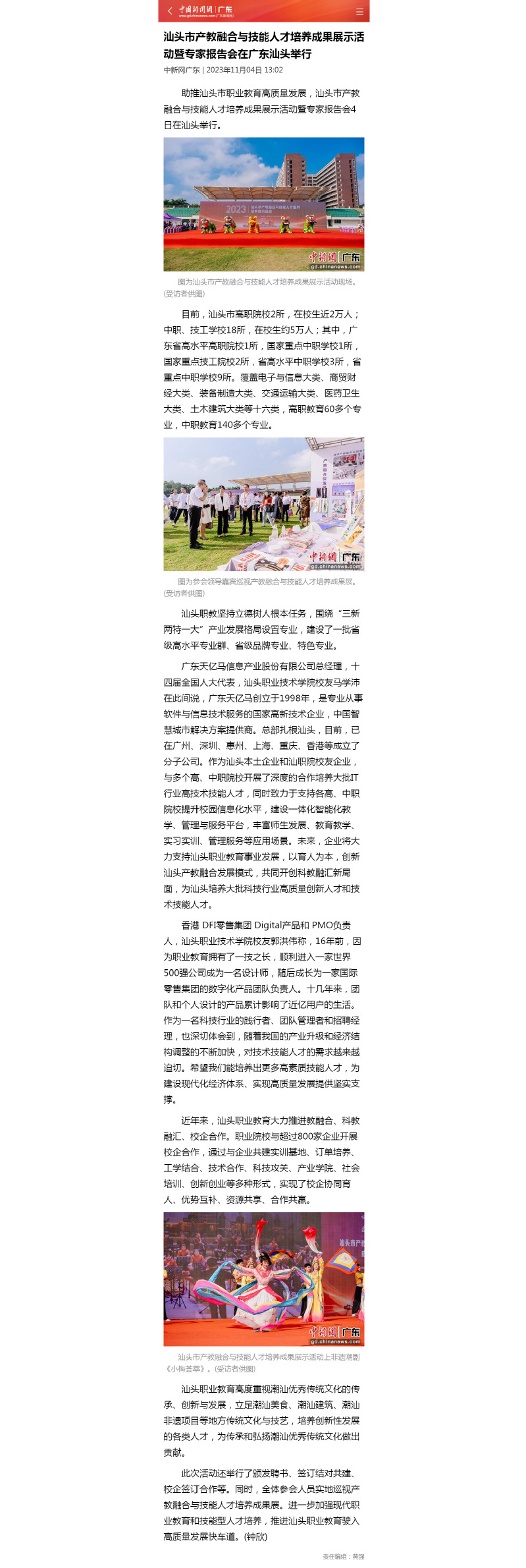 汕头市产教融合与技能人才培养成果展示活动暨专家报告会在广东汕头举行