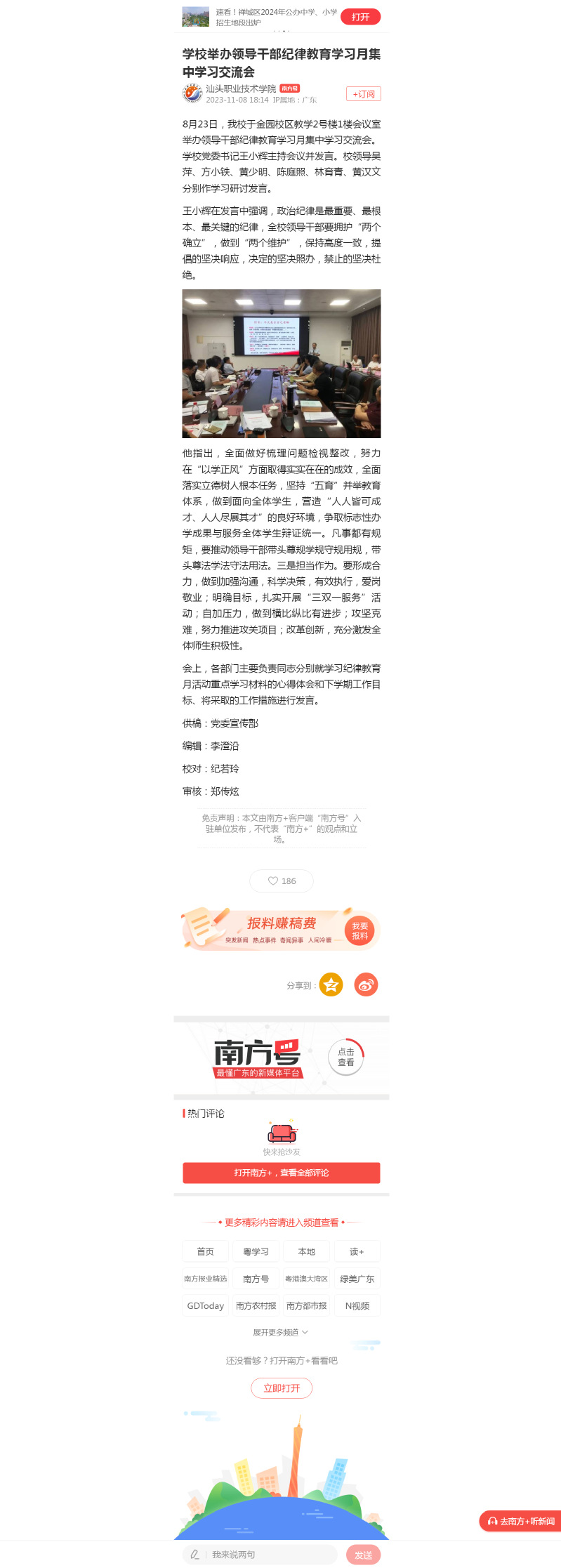 学校举办领导干部纪律教育学习月集中学习交流会
