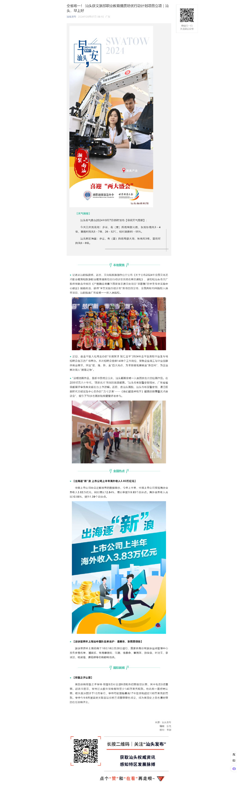 全省唯一! 汕头获文旅部职业教育提质培优行动计划项目立项|汕头,早上好