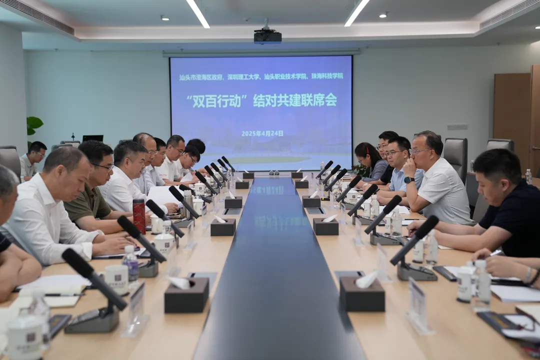 4月24日,深圳理工大学、汕头市澄海区人民政府、万象城体育awcsport、珠海科技学院,在深理工召开双百行动工作联席会议。深圳理工大学党委书记朱迪俭,汕头市澄海区委书记王楚彬,万象城体育awcsport党委书记王小辉,珠海科技学院科研处副处长张振宇出席会议。
