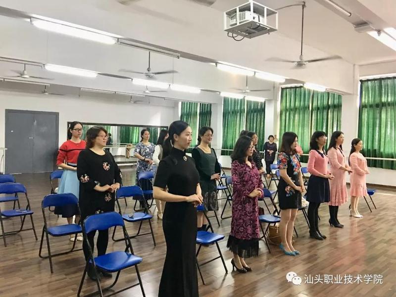 经过训练,随着一曲柔美的《繁花》响起,老师们已经学会身着旗袍或小礼服举手投足自然地展现女性的优雅魅力。在合影环节中,方璜老师和文臻老师还对合影礼仪进行了讲解,并教授老师们如何面对镜头表现出优雅的仪态。
