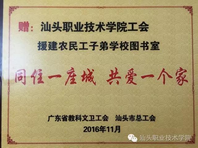 2016年115日下午,学院工会参加了汕头市总工会援建“农民工子弟学校图书室”暨创文进校园活动,活动由市教育工会与市职工义工协会联合举办,在农民工子弟学校“精英学校”举行。活动得到汕头大学、汕大医学院、中心医院、汕大附属一医院、附属二医院,肿瘤医院、粤东高级技工学校、金山中学、汕头第一中学等来自市文教卫系统的10家基层工会的积极响应和大力支持,把爱心和温暖传递给农民工子弟,在教育系统和外来工家长中反响较大。