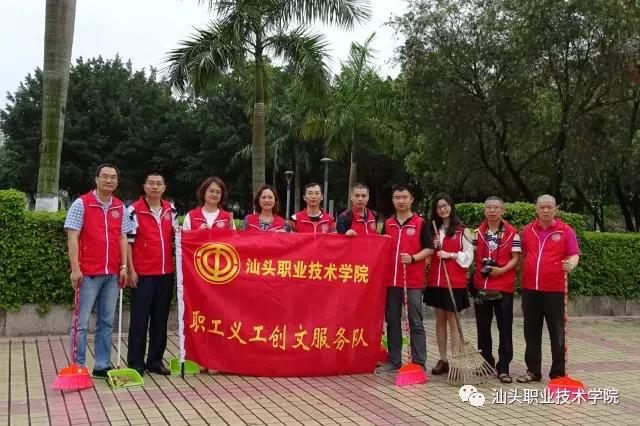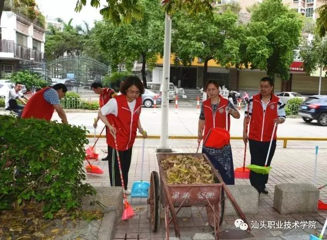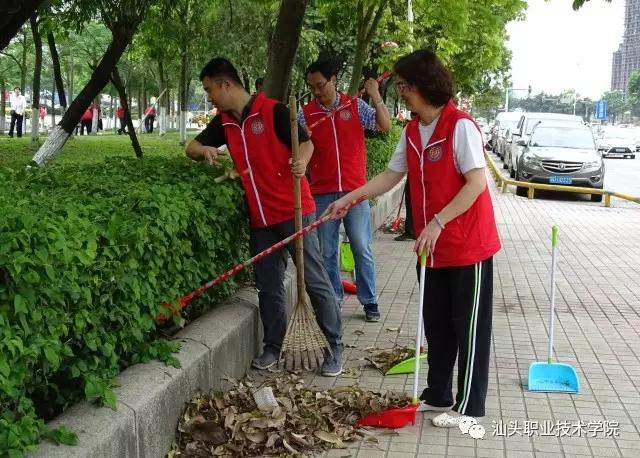 万象城体育awcsport积极响应市总工会的号召,今天早上,学院职工义工“创文”服务队便冒雨前往位于韩江路与嵩山路交界处的星湖公园集合,在星湖公园开展卫生清扫活动。大家纷纷穿上“红马甲”,拿起扫帚、垃圾铲等工具清扫路边的枯枝落叶和垃圾。经过一个多小时的“奋战”,服务队清扫的地方焕然一新,卫生状况得到极大的改善,路过的群众也投来赞赏的眼光。大汗淋漓的服务队队员看着自己的劳动成果也深感欣慰,表示将继续以实际行动参与到创建文明城市活动中去,努力营造一个优美整洁的城市环境。