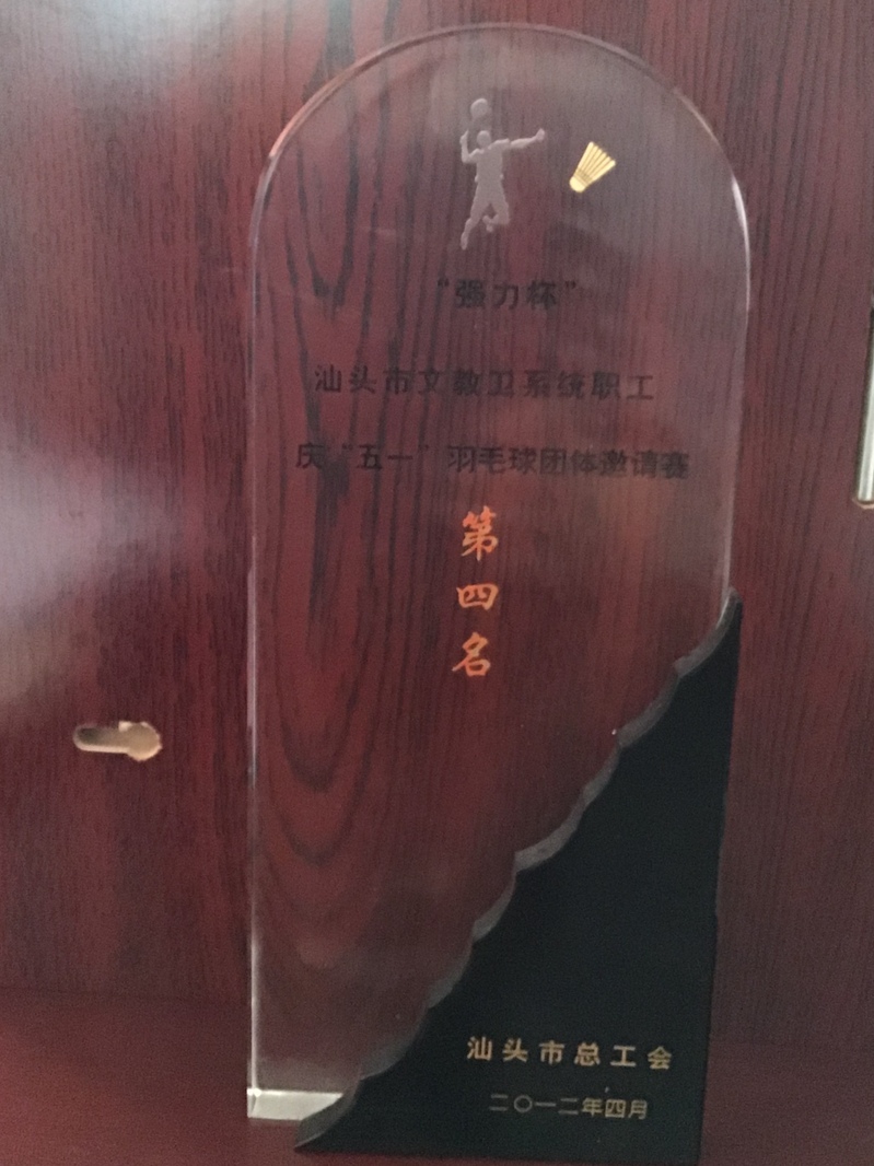 2012年荣获“强力杯”汕头市文教卫系统职工庆“五一”羽毛球团体邀请赛第四名