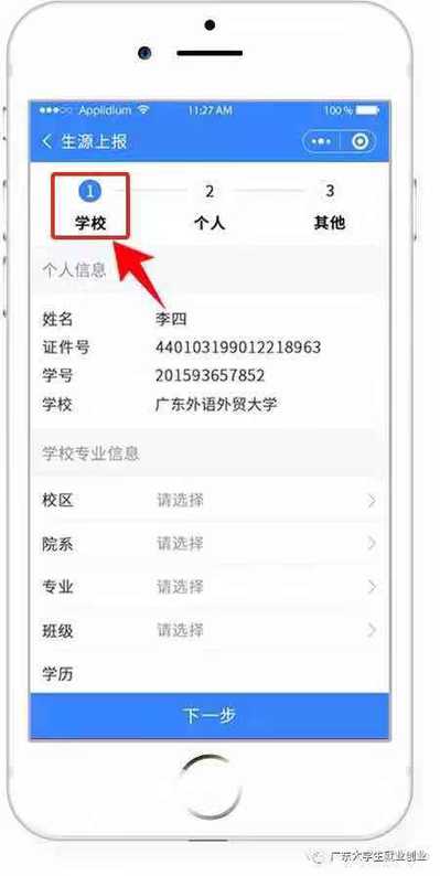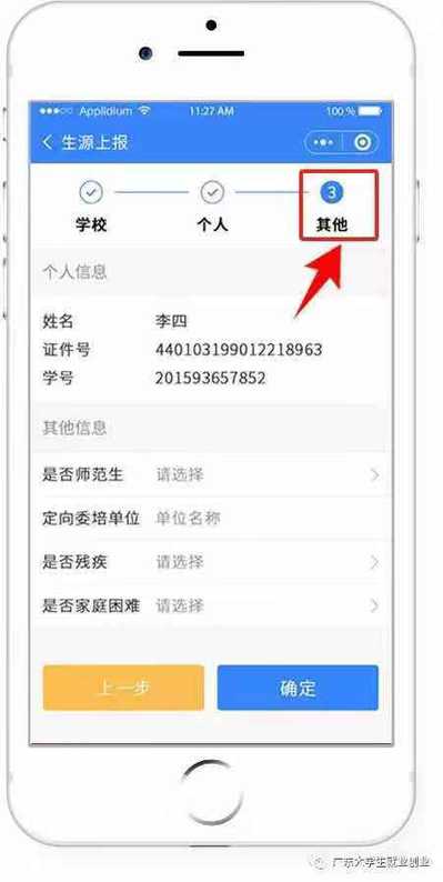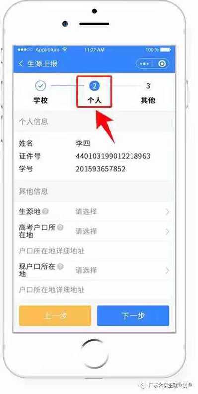 2、依次填写“学校”“个人”“其他”三部分信息。