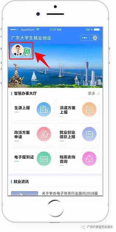 1、登录“广东大学生就业创业”小程序后,可选择从首页进入“生源上报”窗口。