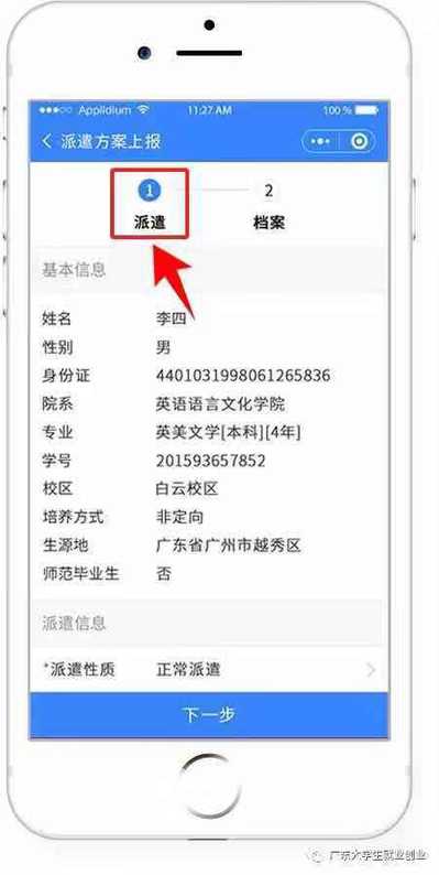 1、登录“广东大学生就业创业”小程序,可选择从首页进入“派遣方案上报”窗口。进行“派遣”信息填写或选择。