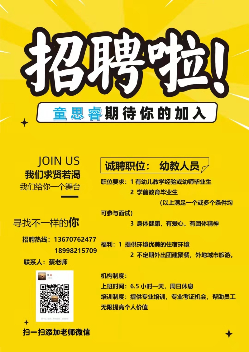 ​【招聘】童睿思幼儿园