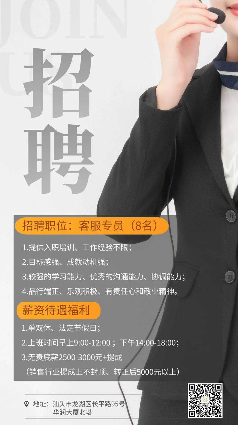 工作地点:汕头市龙湖区长平路95号华润大厦北塔(万象城隔壁)