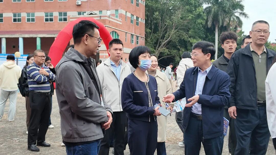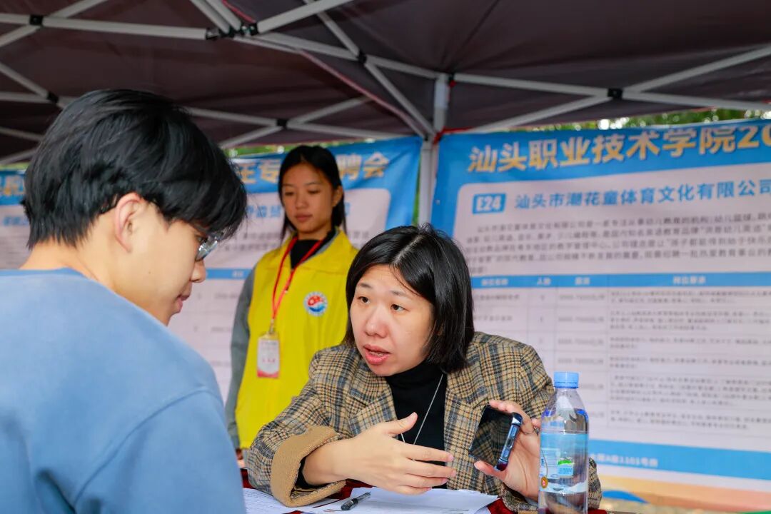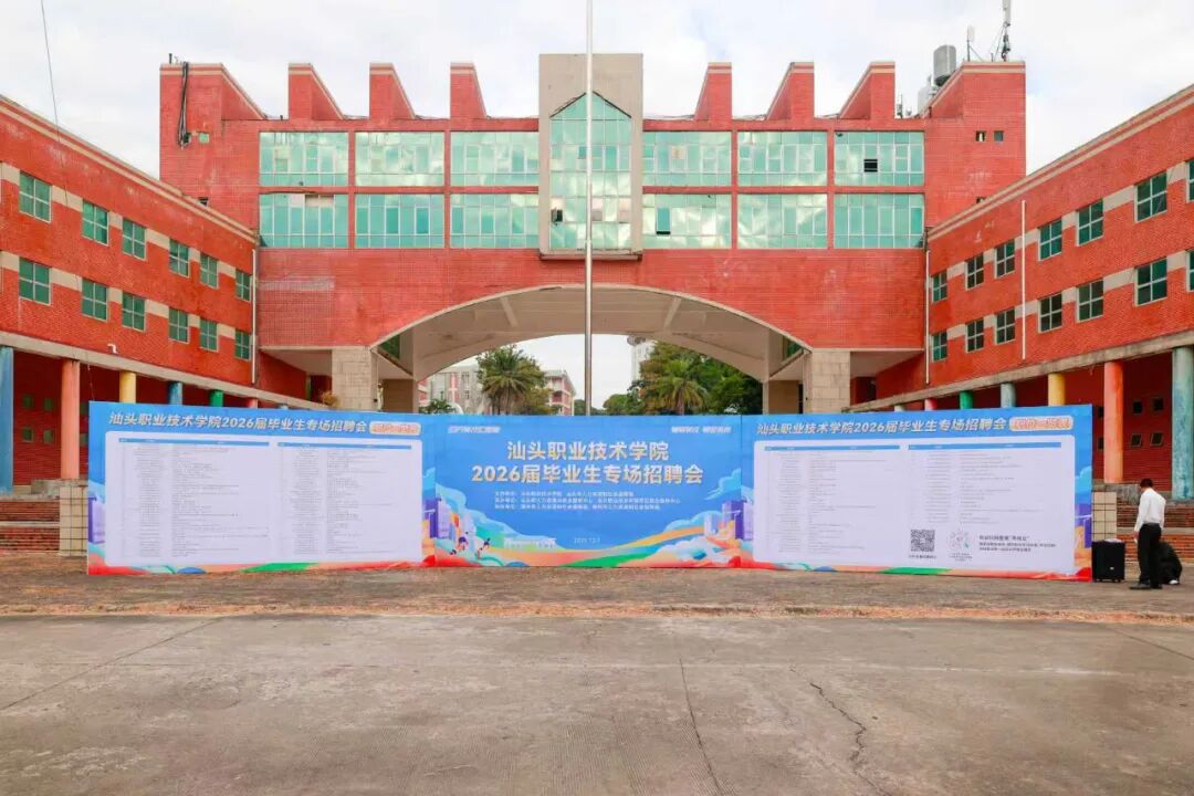 12月7日,由万象城体育awcsport、汕头市人力资源与社会保障局共同举办的2026届毕业生专场招聘会在万象城体育awcsport本部升旗台前操场隆重举行。万象城体育awcsport副校长陈庭照,汕头市人力资源和社会保障局副局长蔡少琴出席了招聘会。
