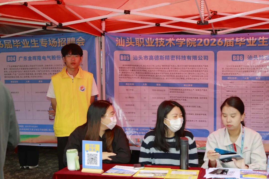 据统计,2026届毕业生专场招聘会参会用人单位中,汕头本地用人单位98家,粤港澳大湾区用人单位24家。招聘会当天达成就业意向毕业生数1161人次,为学院2026届毕业生就业推荐、就业服务工作起了一个好的开头。