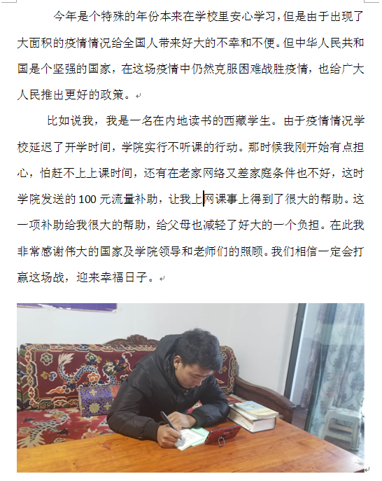 汕头职院圆梦助学流量补助为学生们提前着想,让学子们没有了后顾之忧,开学的线上学习顺利进行!收到流量补助的同学们感动不已:感谢学校的暖心助学政策,让我们贫困生能安心在家学习非常感谢学院能在疫情期间为我们送来这宝贵的温暖,让我们渴望学习的心备受感动。学院对贫困学生上网课流量补助,这如同雪中送炭”......受助后发来感谢信,纷纷表达对学院这一暖心活动的感谢,同时表示会认真学习,掌握专业知识,不辜负学院的关心与期望!