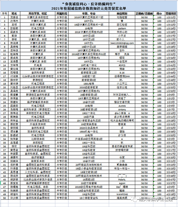 2021年校园诚信防诈教育知识云竞答获奖名单出炉,快看看有没有你