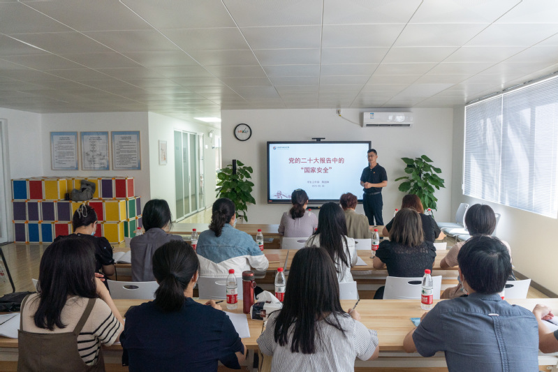 为深入学习宣传贯彻党的二十大精神,提高辅导员的业务能力和责任意识,5月26日,学生工作部在院本部教学一区举办“党的二十大报告中的‘国家安全’”专题党课。党课由学工部部长陈国辉主讲。