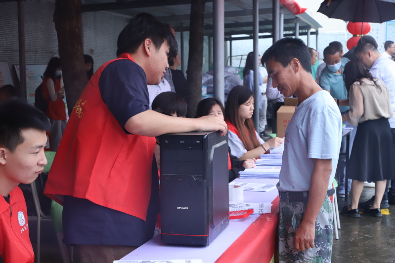 同时,组织电子信息学院、先进制造学院近40名师生送技术下乡,采用集中维修和入户维修两种形式,为当地居民提供义务家电维修服务。维修队不仅在社区党群服务中心现场维修村民送来的小家电,还入户为行动不便的村民提供上门维修服务,不仅把便民为民落到实处,更是让获得过国家资助的学生,将理论运用到实践之中,通过义务维修公益服务活动,展现万象城大学生青年的青春力量,回馈社会。此次活动共维修热水壶、电风扇、电视、电脑、洗衣机等电器30余件,受到村民一致好评。