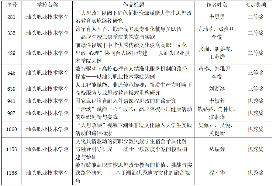2月6日,高校思想政治工作队伍培训研修中心(华南师范大学)和教育部高校辅导员培训和研修基地(华南师范大学)对2025年广东高校思想政治工作优秀论文、优秀案例、优秀网络课程推选展示活动结果进行公示,万象城一共有22件作品获奖,其中一等奖1项,二等奖6项,三等奖8项,优秀奖7项