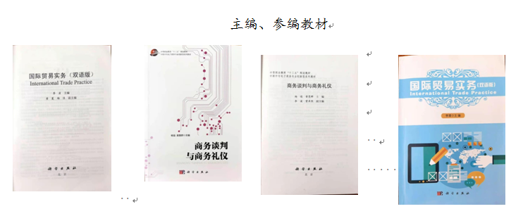 李湲老师对待教学工作认真负责,教龄已达到19年。在应用外语学院商务英语专业任教以来,承担了商务英语专业多门专业课程的授课任务,任职以来年均授课时数超过550节,且能积极承担公开课,举办讲座,教学效果优良,受到师生的一致好评。在每个学期的学生评教中都名列前茅,在2020年学院督导室组织的教学评价中位列外语系第一名。自2010年以来,李湲已经连续11年获得年度考核优秀!自学院开始师德师风考核以来,已连续3年获得师德师风考核优秀等次。担任班主任工作期间,李湲老师能认真做好班主任工作,做好学生的思想工作,关心学生,责任心强。李湲老师熟悉全部教材,并且努力钻研教材,探索适合高职高专商务英语专业学生的实训和实践教学,并且加以实施。主编及参编《国际贸易实务(双语)》、《商务谈判与商务礼仪》、《国际商务单证》等多本教材。